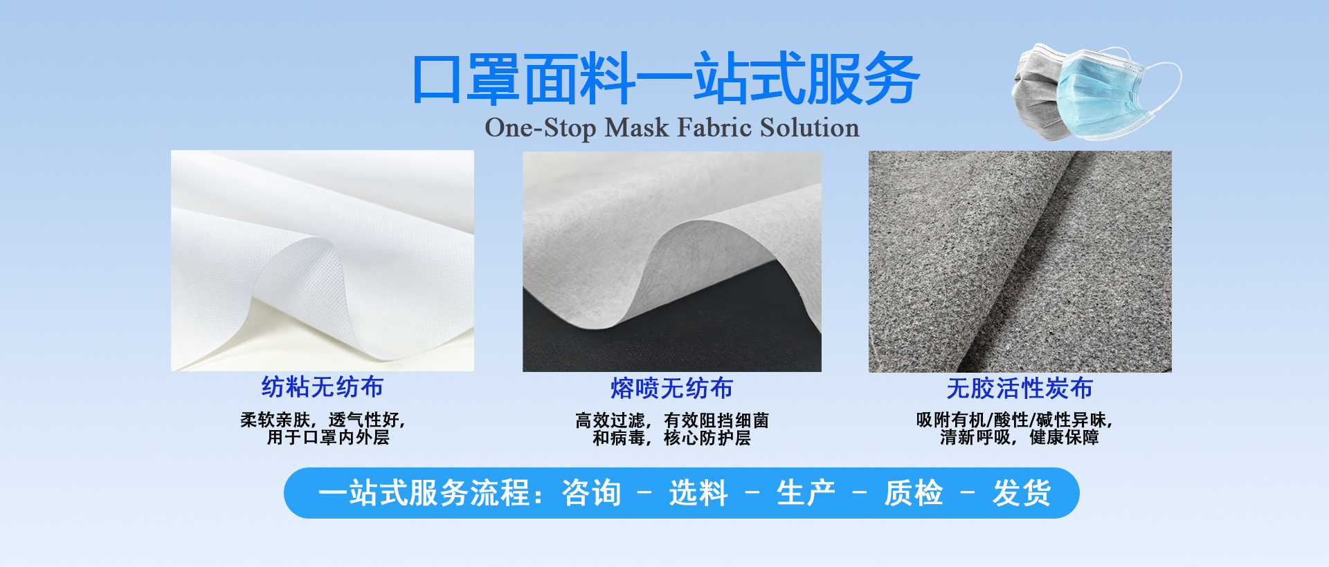 擁有10萬級凈化車間,500平方米研究生實驗室,紡粘無紡布和水駐極熔噴布生產線;年產布料10000噸
